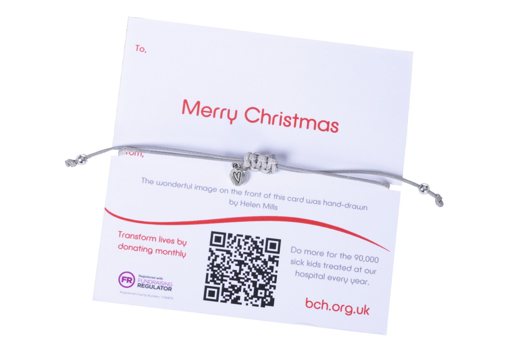 The delicate bracelet is made from a contemporary thread that dangles a beautiful star crystal pendant. The wonderful image of our Hospital was hand-drawn by Helen Mills.