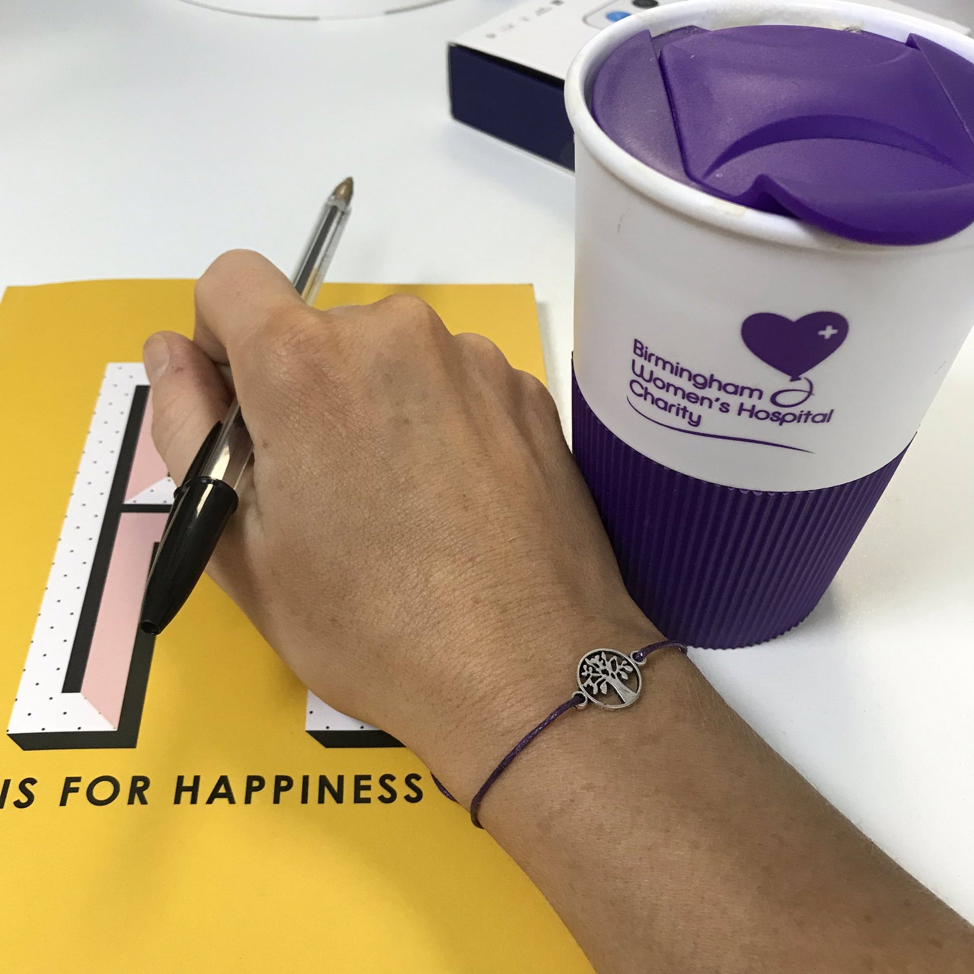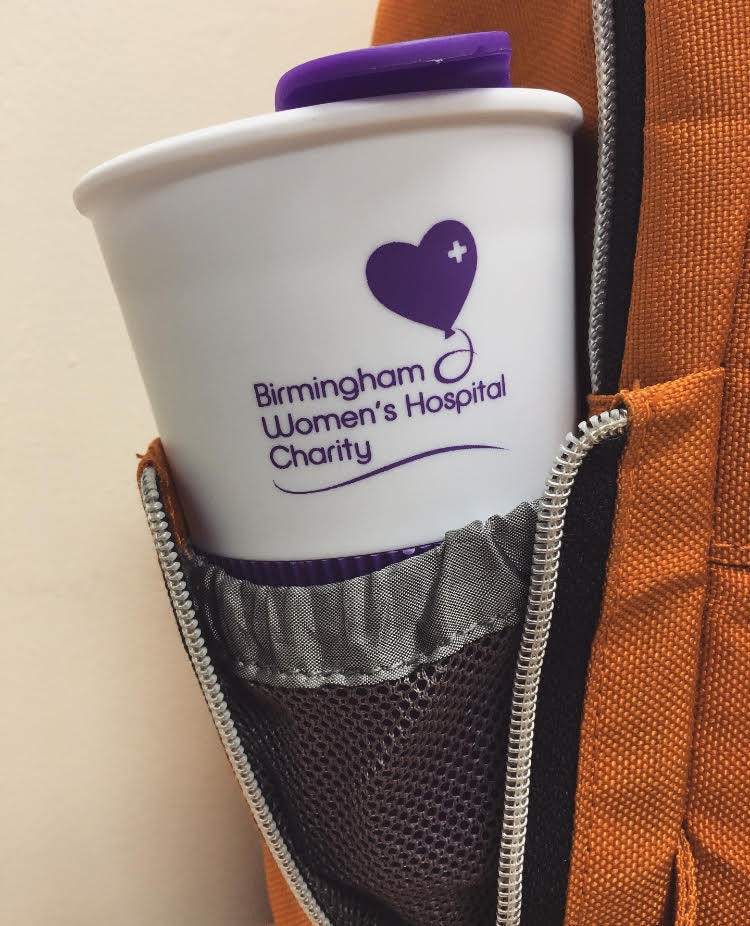 Birmingham Women's Hospital Charity, branded Americano cup. Purple and white travel coffee cup sure to get you through the day! this americano cup is a double-walled insulated mug made from PP (polypropylene) to keep drinks warm.