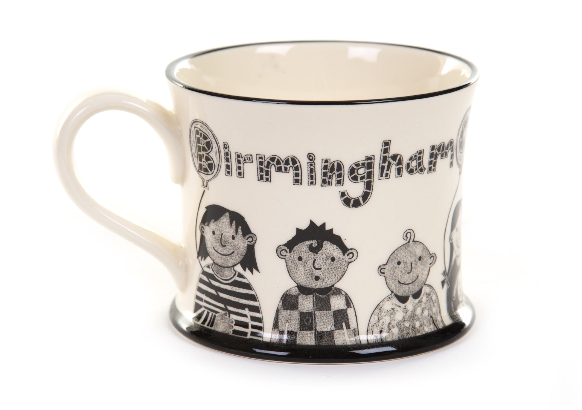Black/Cream Mug designed by Moorlands Pottery in Stoke on Trent for Birmingham Children's Hospital.