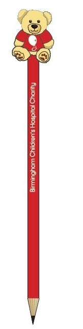 Introducing our new Charity Bertie pencil. Red pencil with 'Birmingham Children's Hospital Charity' printed on and a bespoke Bertie Bear PVC topper affixed.