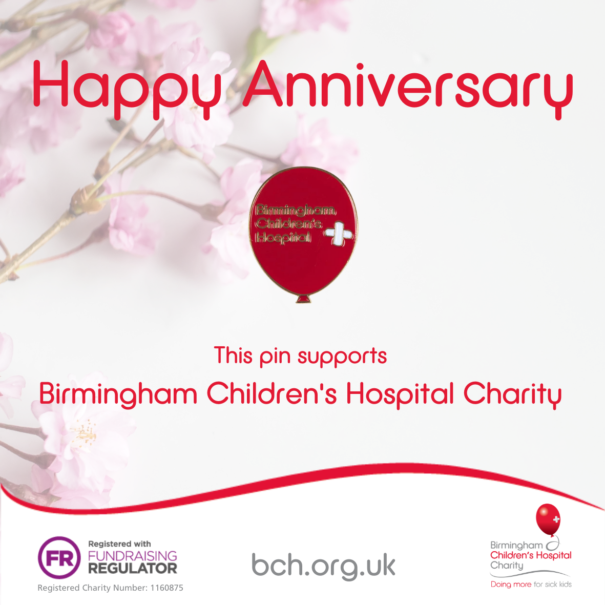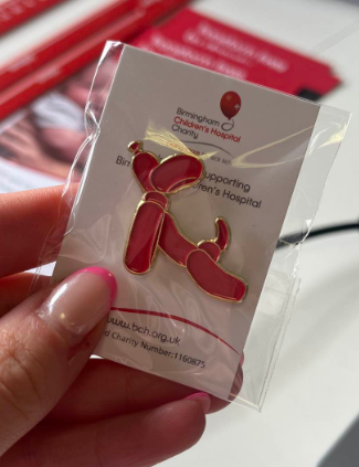 Enamel pin badge of the Birmingham Children's Hospital Charities logo.