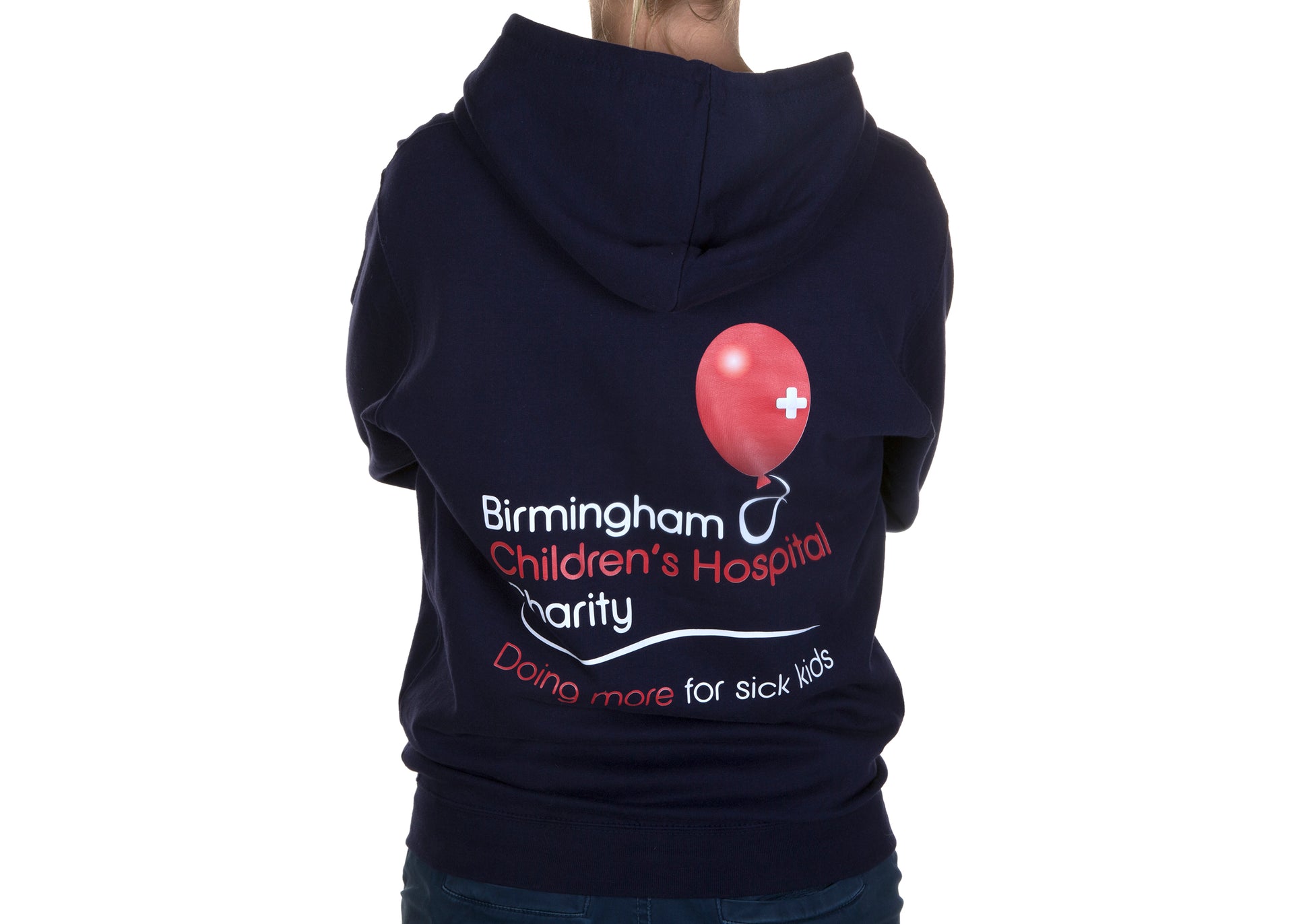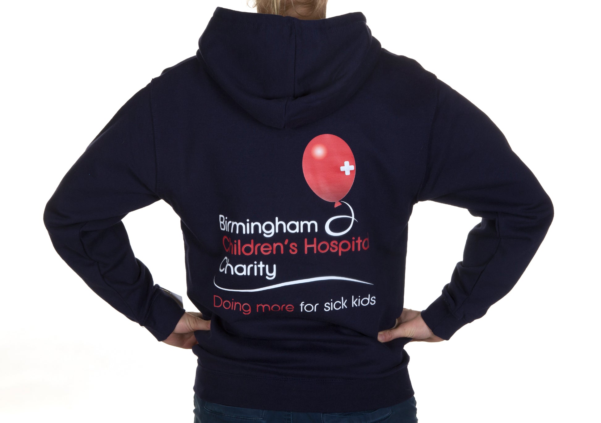 There is also a large Birmingham Children's Hospital logo printed on the back of the hoodie.