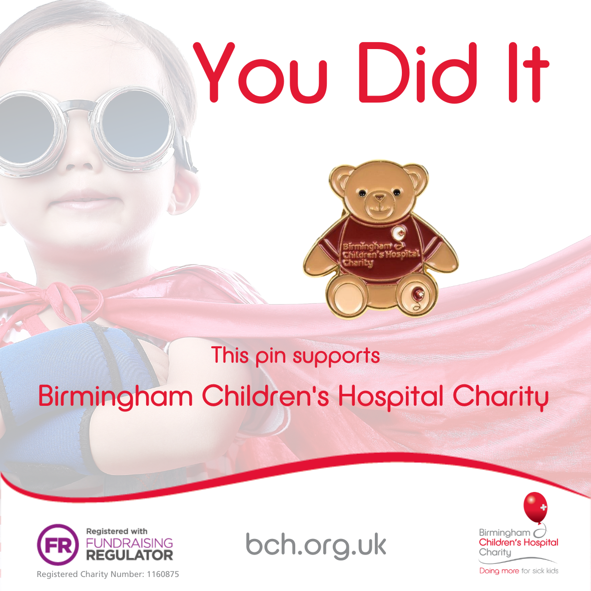Enamel pin badge of the Birmingham Children's Hospital Charities logo.