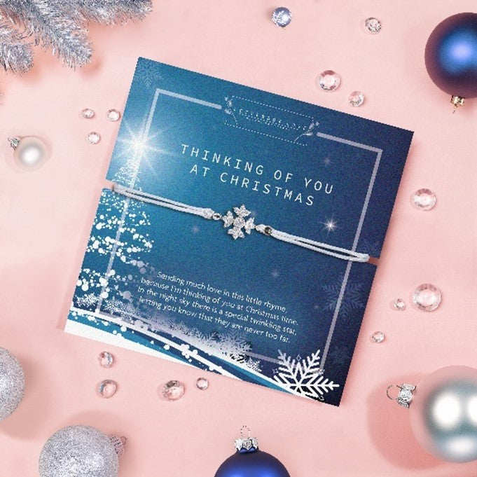 Send someone a little bit of love to let them know you're thinking of them this festive season. Our delicate 'Thinking of you' bracelet features a snowflake charm and is perfect for a Christmas gift.